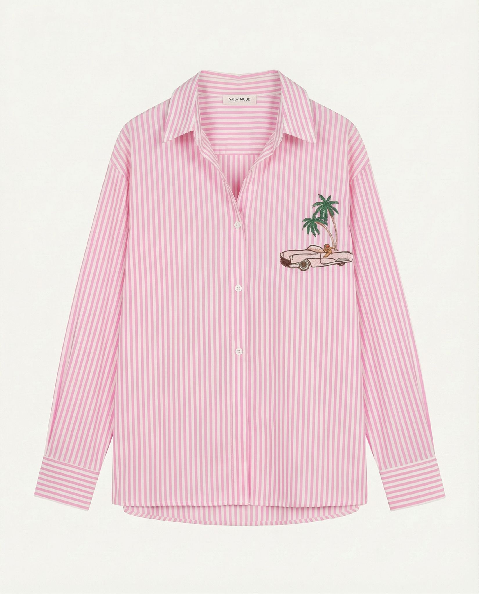 Chemise à rayures rose et blanc.