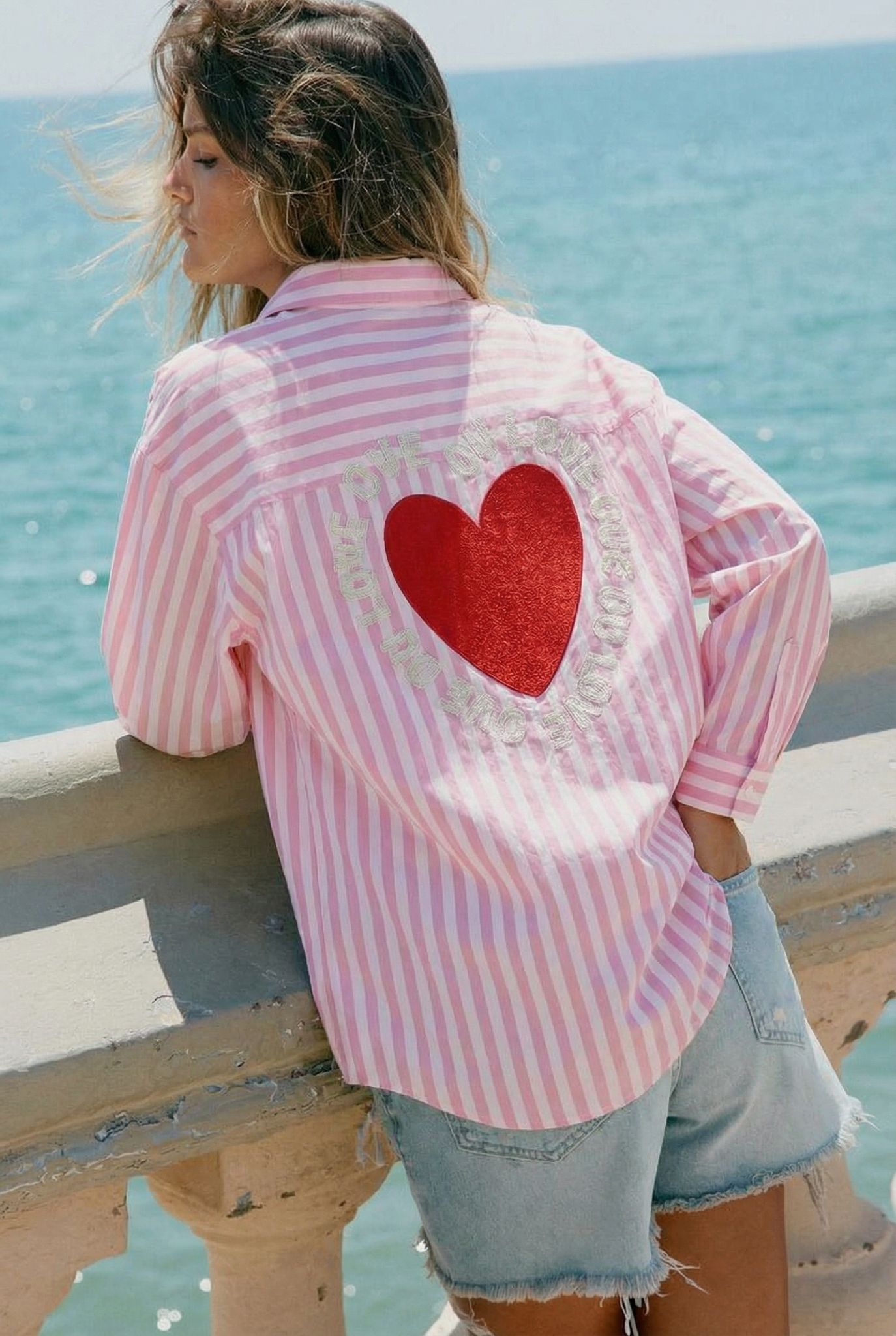 Motifs de coeurs rouges sur la poitrine et le dos.